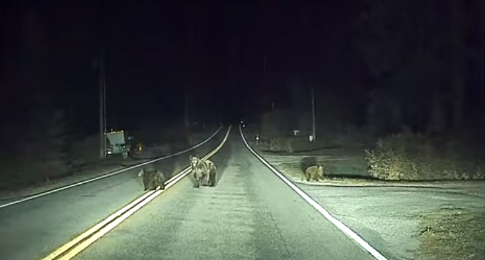 По словам мужчины, он ехал по ночной дороге, когда впереди вдруг увидел животных, переходивших трассу. Увидев свет и приближение автомобиля, медведица оттолкнула одного из своих детенышей, который был на середине дороги, и приготовилась встретить удар судьбы. Но автомобиль остановился в нескольких метрах от зверей. Мать-гризли подождала, пока медвежата убегут с дороги и, убедившись, что они в безопасности, побежала за ними.